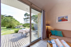 Lumineux, les studios d’hôtes en duplex s’ouvrent sur une grande baie avec terrasse bois et une belle perspective sur la nature. Abri vélos et parking sur la propriété.